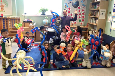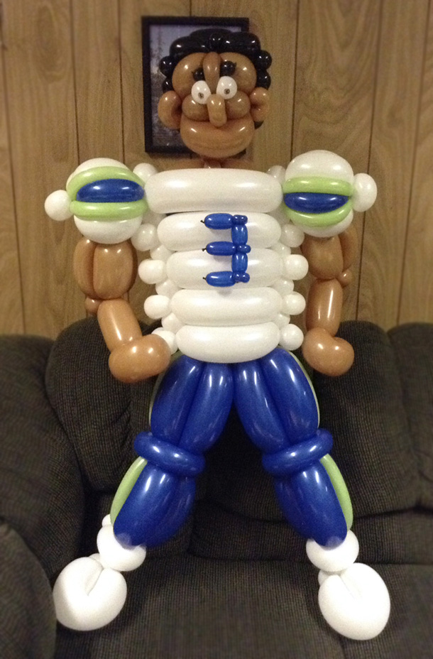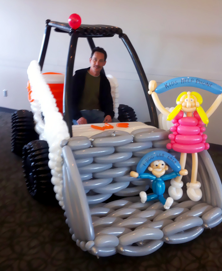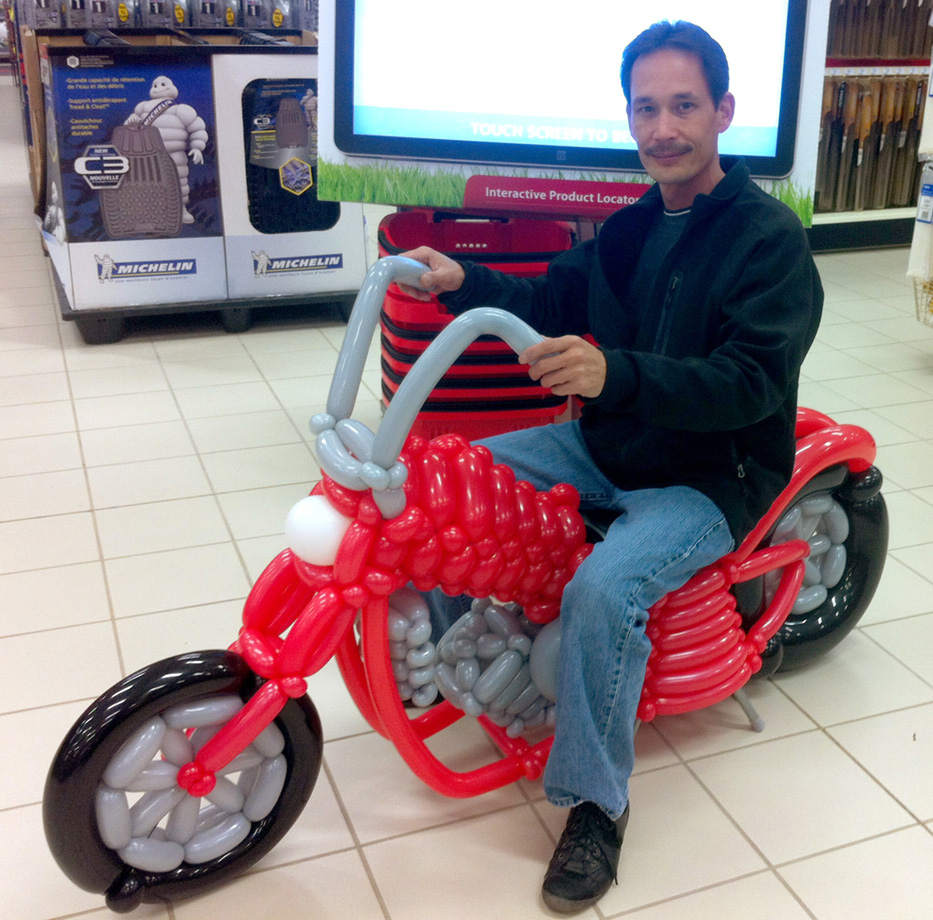 Obviously, he hasn't stopped since! He continued this new artful passion between making dinner and working up to corporate management. Now Mike lives a happier lifestyle twisting balloon creations for hundreds of kids a week as a full-time career. His artistic talent comes through this inspiring medium delivering unique, never before seen renditions of our favourite characters, animals, mascots and imaginations.